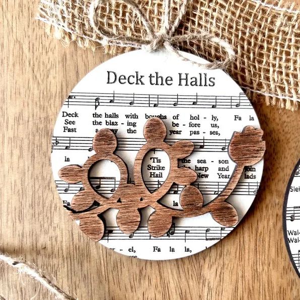 ❤️The "Music Sheet Nativity Ornament" is a delightful set of six Christmas tree ornaments, each with a unique and meaningful message. Each ornament features a classic Christmas carol and its corresponding music sheet, making it a perfect addition to your holiday decorations.